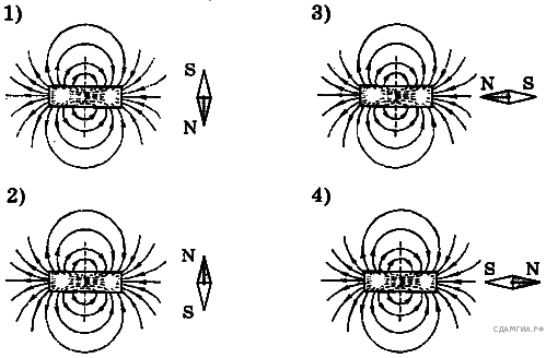 Правильное положение магнитной стрелки в магнитном поле постоянного магнита изображено на рисунке?
