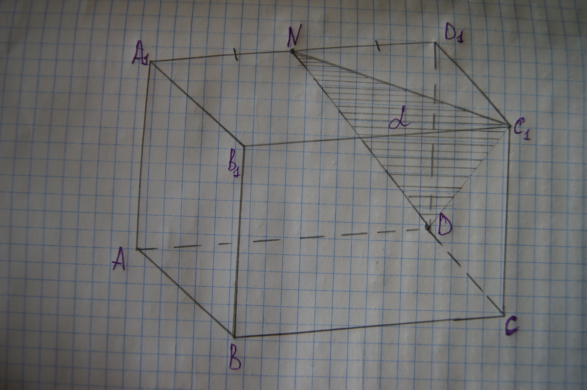 Изобразите параллелепипед ABCDA1B1C1D1 и постройте его сечение плоскостью, проходящей через точки D и C1, и середину ребра A1D1