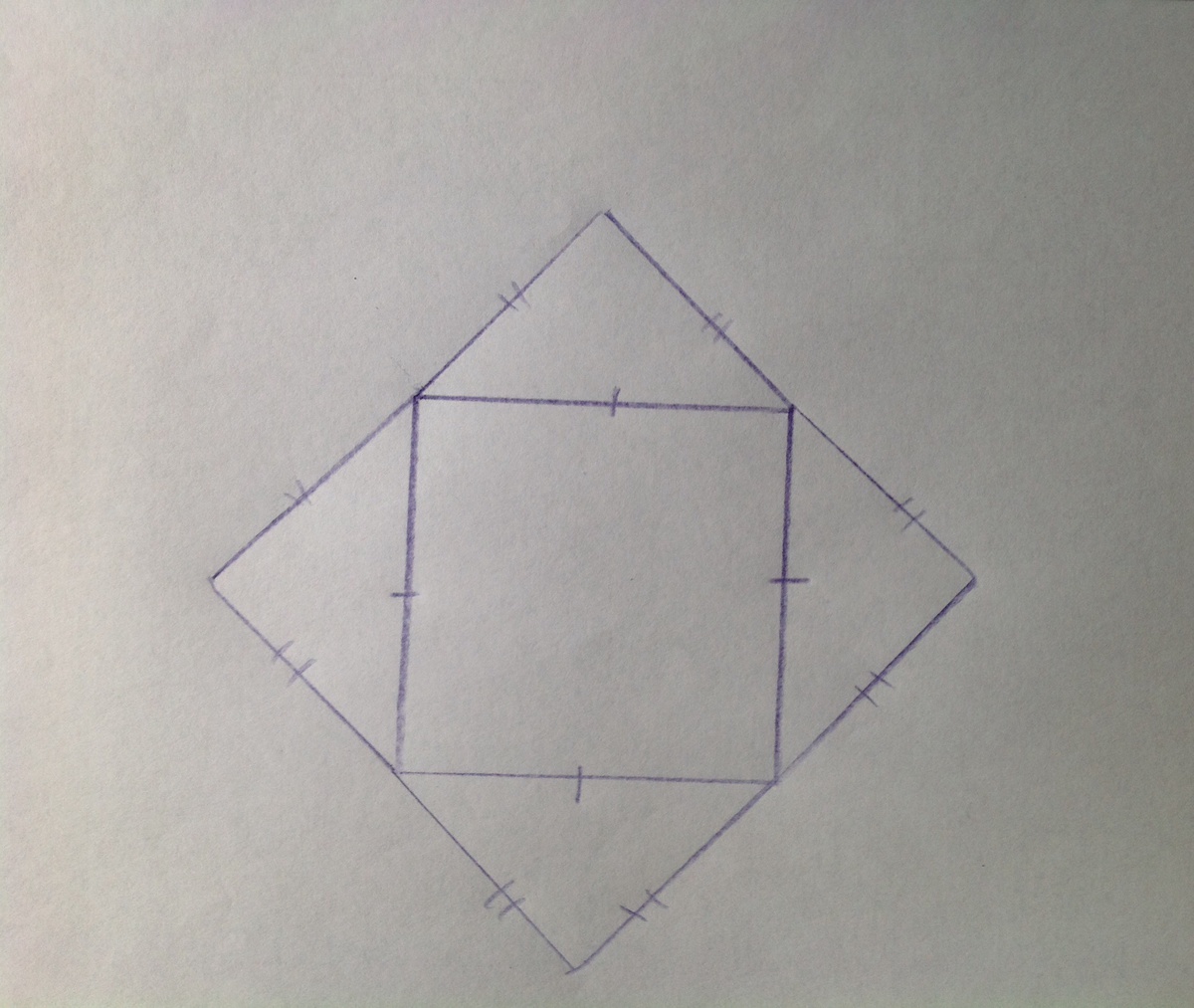 Каждую сторону квадрата взять за основание равнобедренного прямоугольного треугольника и на чертить это всё так:
