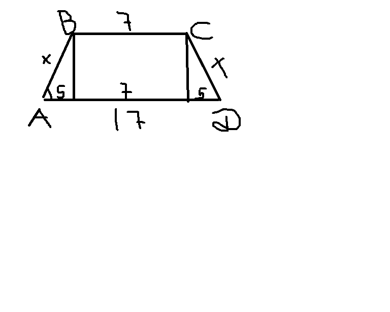 у ривнобедрений трапеции ADCB AB и BC основы . кут BAD =60 (градусив) ,AD=17м ,BC=7м .знайты бичну сторону трапеции