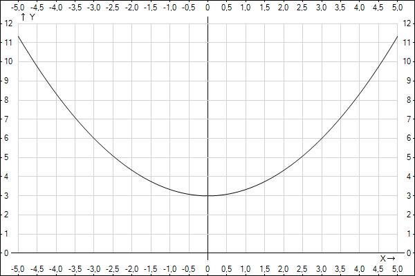 Строим параболу с вершиной в (0;3), ветви вверх и проходят через точки (3;6) и (-3;6)