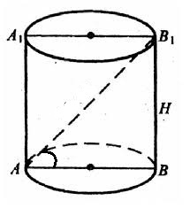 Радиус основания цилиндра - 6 см, высота - 5см. Найдите угол наклона диагонали осевого сечения к плоскости основания цилиндра