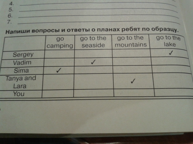 4. Are Tanya and Lara going to go to the seaside? - No, they aren’t going to go to the seaside. They are going to go to the lake.