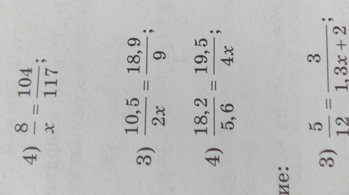 4) 18,2/ 5,6 = 19,5 / 4х 3,25 =19,5 / 4х 3,25 * 4х = 19,5 13х = 19,5 х = 1,5