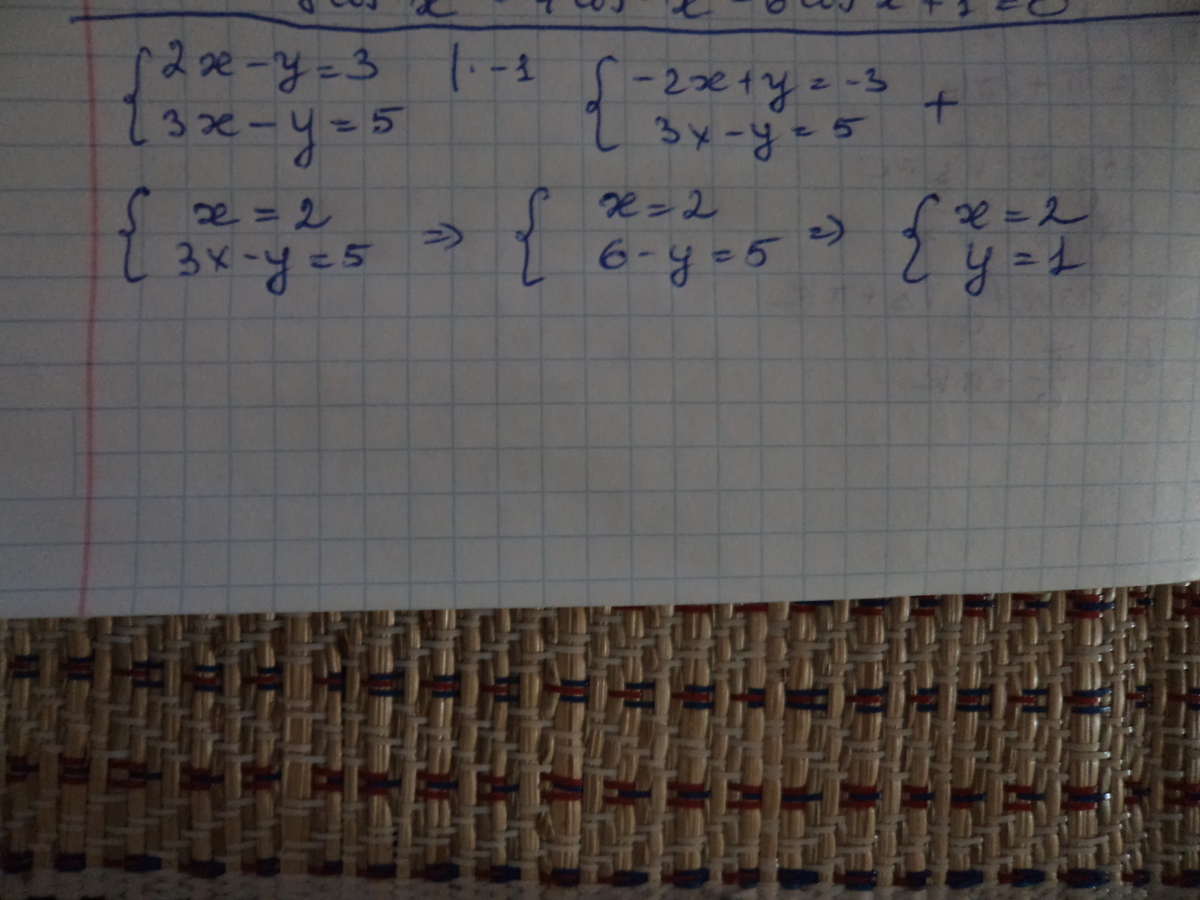 2х-у=3 *(-1) -2х+1=-3 Х=2