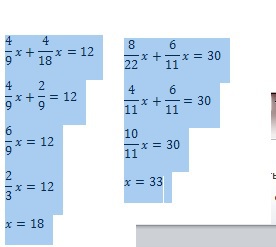 4/9х + 4/18х = 12 и 8/22х + 6/11х = 30