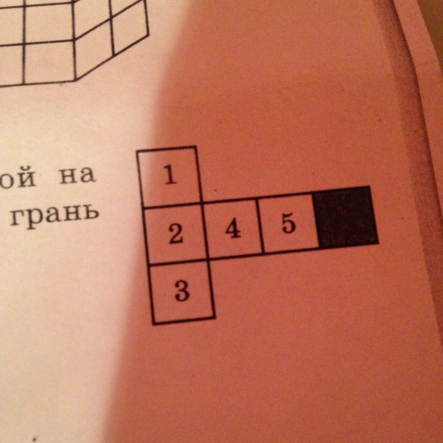 Мысленно сверните куб из развёртки,изображённой на рисунке.Какая грань является нижней,если верхняя грань заштрихована?