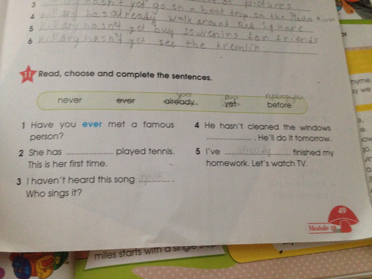 5.already ( она уже сделал домашнюю работу)
