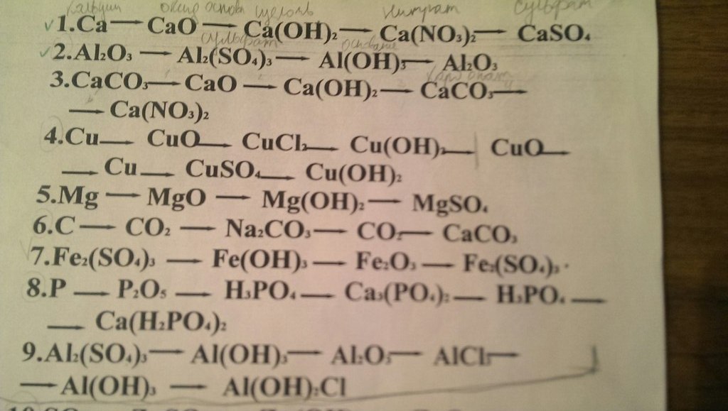 7) CuSO4 + 2H2O = Cu(OH)2 + H2SO4