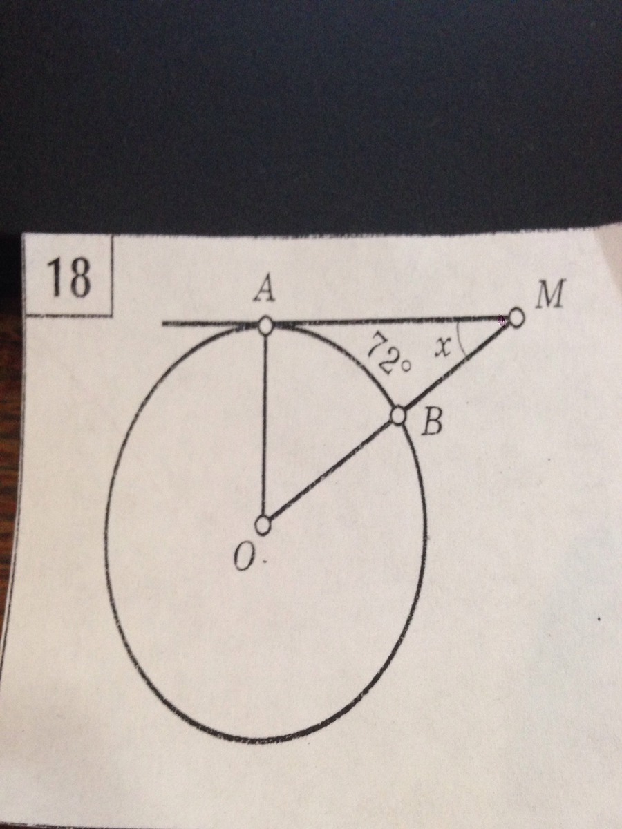 угол м = 180* - ( 90* + 72*) = 18*