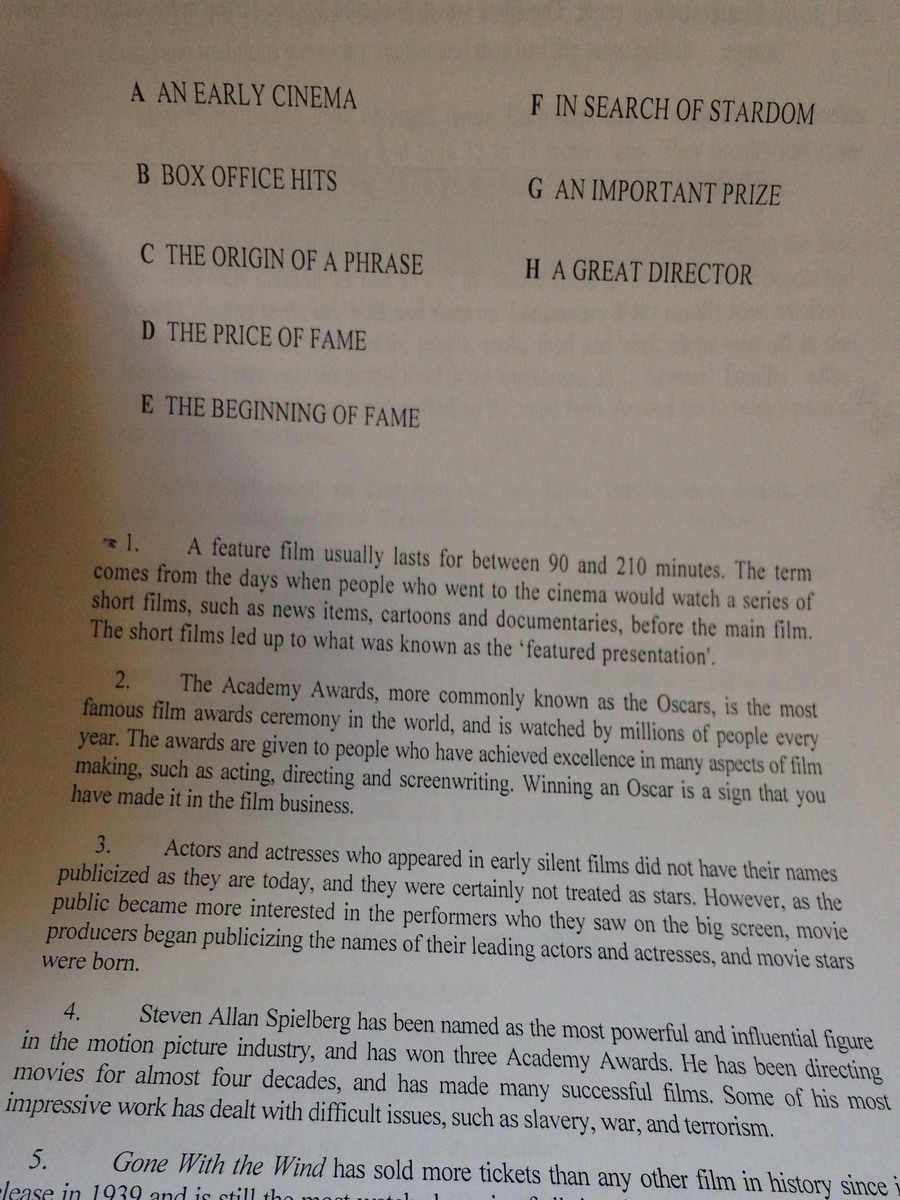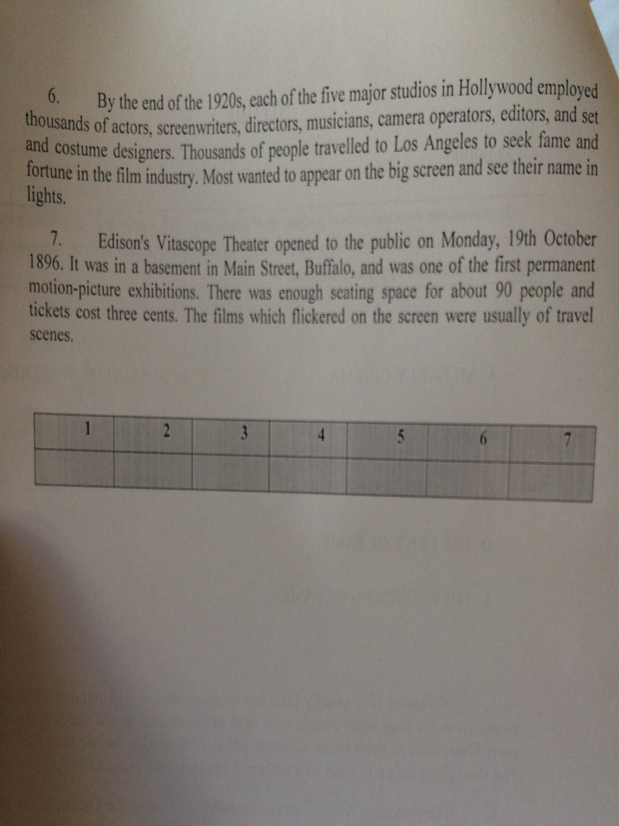 Текст про развитие киноиндустрии: 1 - C 2 - G 3 - E 4 - H 5 - ? 6 - F 7 - A