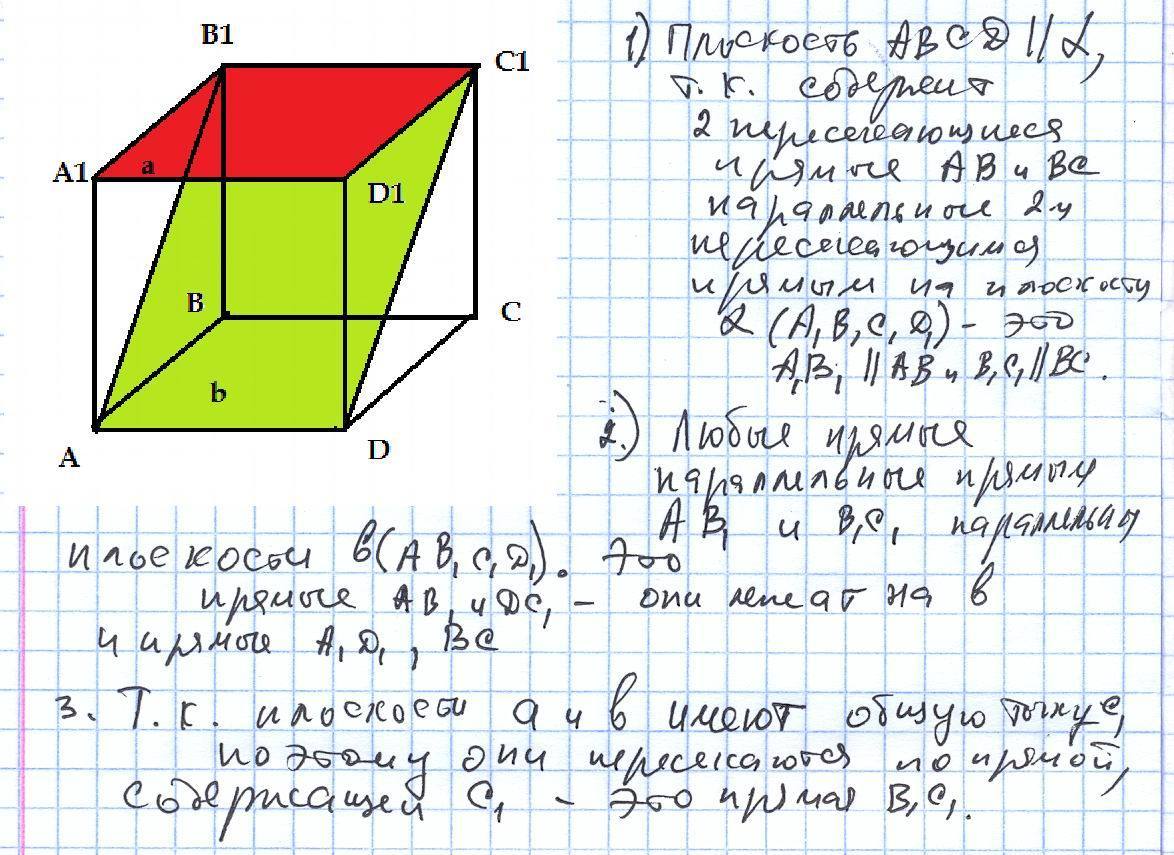 Даны куб ABCDA1B1C1D1, a - плоскость грани A1B1C1D1, b - плоскость, проходящая через прямую AB1 и точку C1. Назовите: а) Плоскость, параллельную плоскости а. б) Прямые, параллельные плоскости б. в) Каково взаимное расположение плоскостей а и б? Ответ объясните.