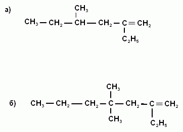 напишите структурную формулу алкенов по их названиям: а) 4-метил-2-этил-гепт-1-ен; б) 4,4-диметил-2-этил-гекс-1-ен
