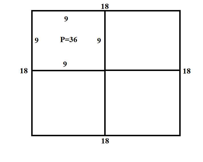Разрезали на равные части, значит сторона большего квадрата равна 2*9=18
