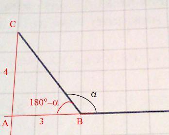 cos∠ABC = cos(180° - α) = AB/BC = 3/5 = 0,6.