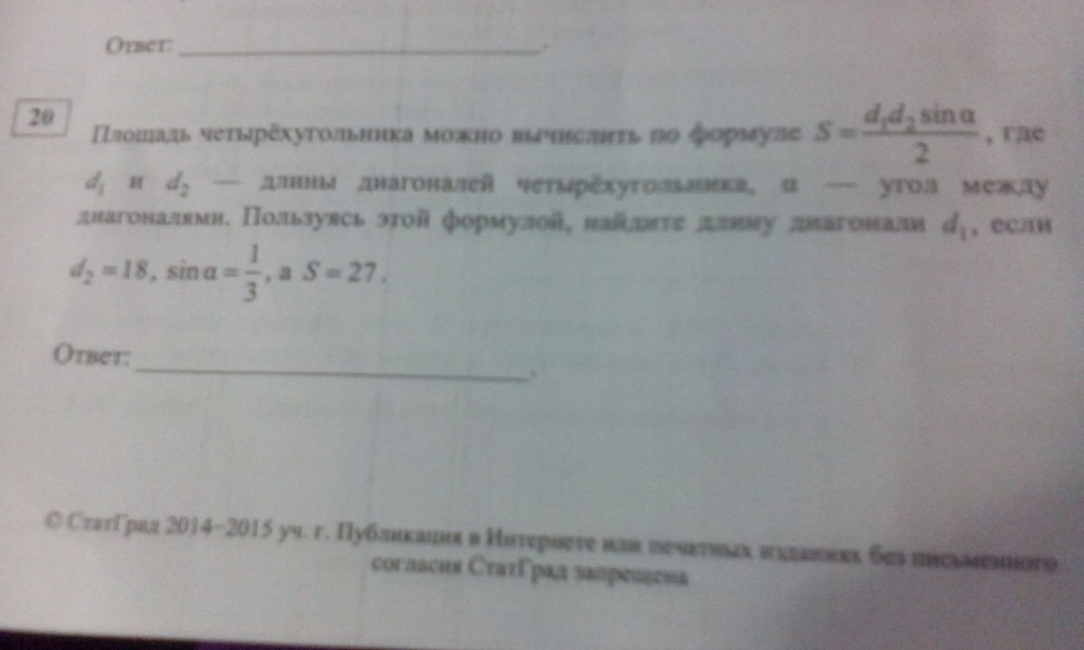 Получится d1=2S/d2*sinA
