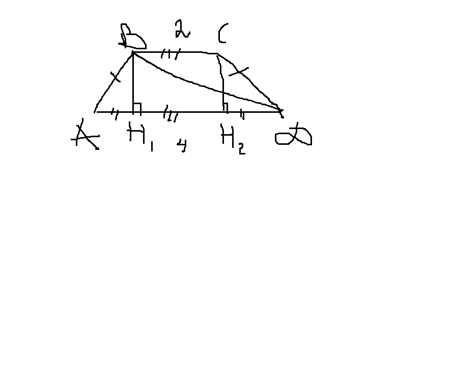1. трапеция АВСД - равнобокая (АВ=СД=2)