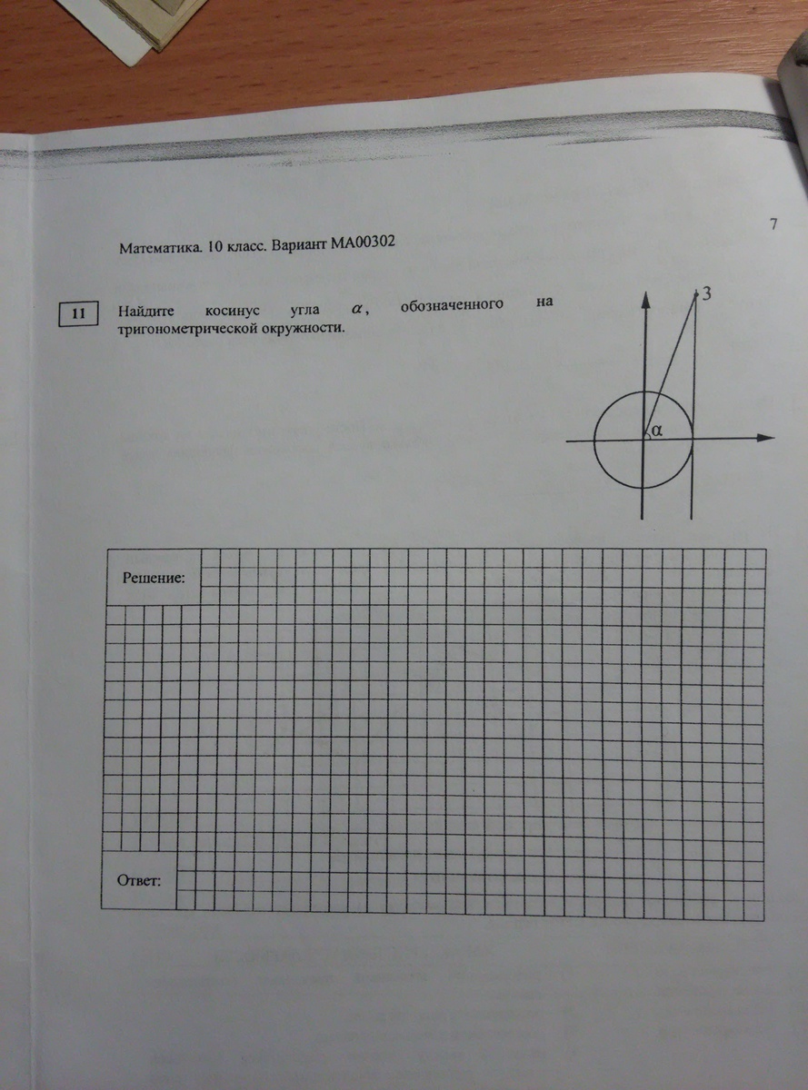 Дана единичная окружность, значит, прилежащий катет равен 1; противолежащий катет равен 3; гипотенуза =