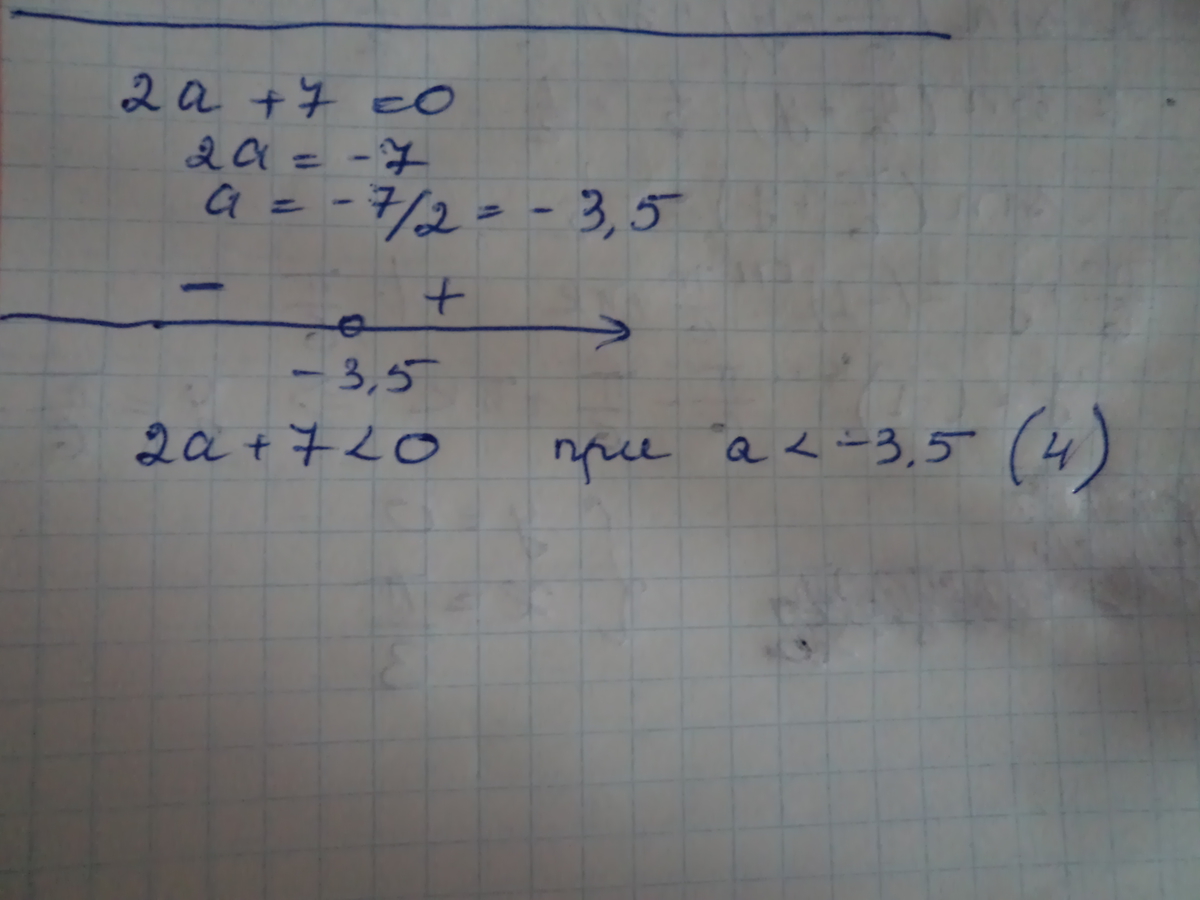 Нужна помощь)Я не понимаю,а скоро экзамен.....При каких значениях a выражение 2а+7 принимает отрицательные значения? 1)а>-7/2 2)а<-2/7 3)а>-2/7 4)а<-7/2