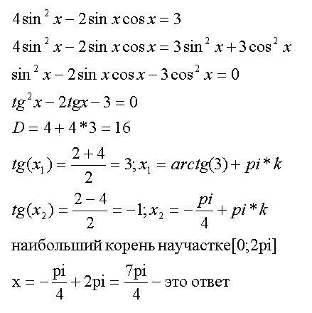 а) Для начала представим 3 в правой части уравнения как 3*1 = 3(sin^2 x + cos^2 x) = 3sin^2 x + 3cos^2 x. Здесь я воспользовался тем, что 1 = sin^2 x + cos^2 x.