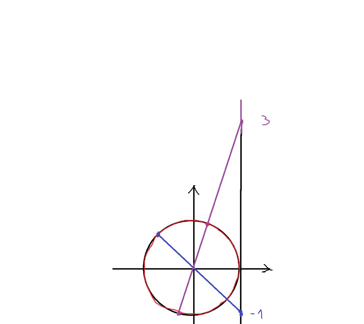 Проводим через них прямые, проходящие через центр окружности, до пересечения с окружностью. В каждом случае получаются две такие точки - это и есть решения уравнений. Решения каждого уравнения я отметил разными цветами.