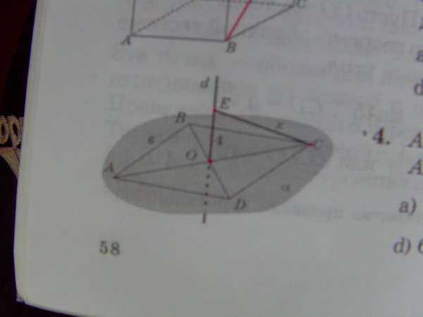 Помогите пожалуйста решить задачу: Дано: ABCD - ромб, d ┴ α , угол BAD = 60 градусов, AB = 6 см , OE = 4 см , EC = x - ?