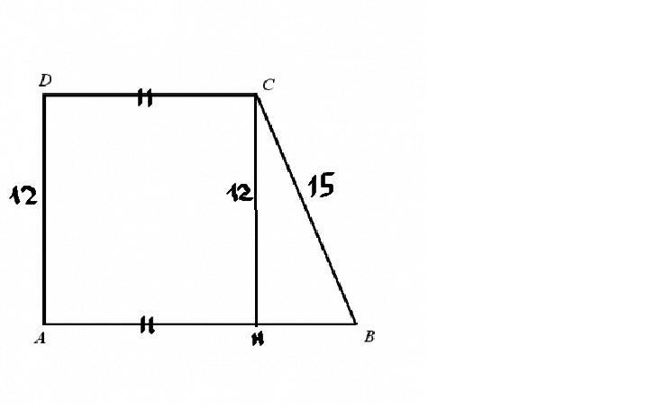 В прямоугольной трапеции боковые стороны равны 12 см и 15 см.На сколько сантиметров различаются основания этой трапеции?
