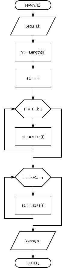 s:=Copy(s,1,k-1)+Copy(s,k+1,n-k);