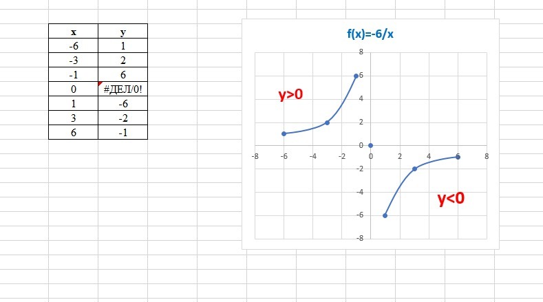 функция задана формулой f(x)=-6/x