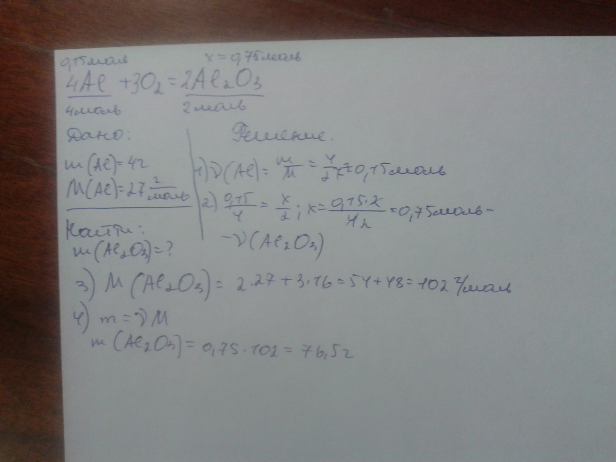 алюминий массой 4 г прореагировал с кислородом. рассчитайте массу образовавшегося оксида алюминия