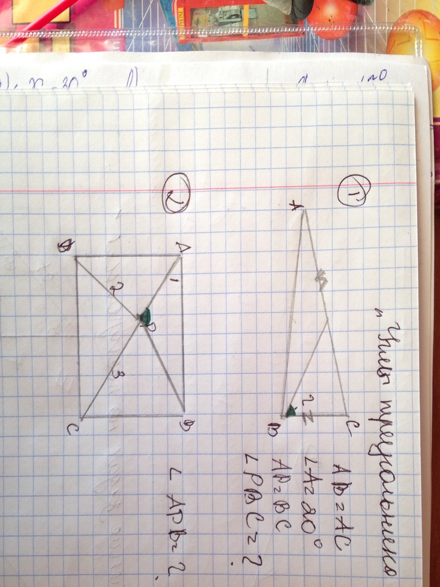 угол РАВ=РВА=20°(свойство равнобедренного треугольника)