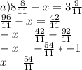 а)8 8/11 - х = 3 9/11