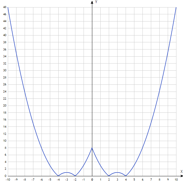 насчет графика - его построить относительно просто: строите параболу y=x²-6x+8⇒часть графика при x<0 стираете, а часть при x≥0 отображаете относительно оси Oy⇒часть графика y<0 отображаете вверх относительно оси Ox(часть y≥0 оставить)⇒получили искомый график.