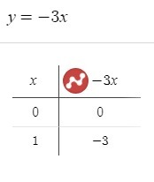 Пример: Пусть х=0, тогда y = - 3 *0 = 0. Точка (0; 0)