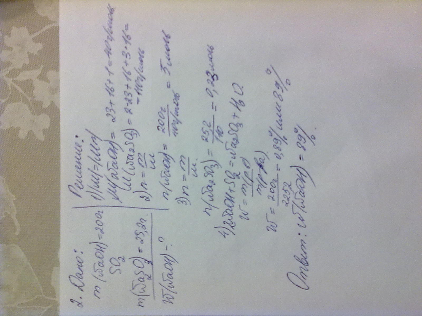Задача 2. Какова массовая доля гидроксида натрия в растворе массой 200г,если изветно,что при пропускании сернистого газа SO2 через раствор,обрается сульфит натрия массой 25,2 г ?