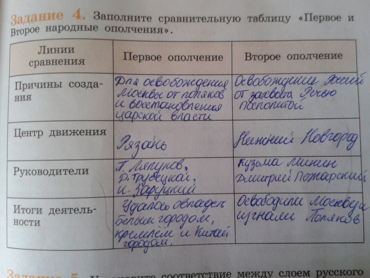 Задание 4. Заполните сравнительную таблицу "Первое и Второе народные ополчения"