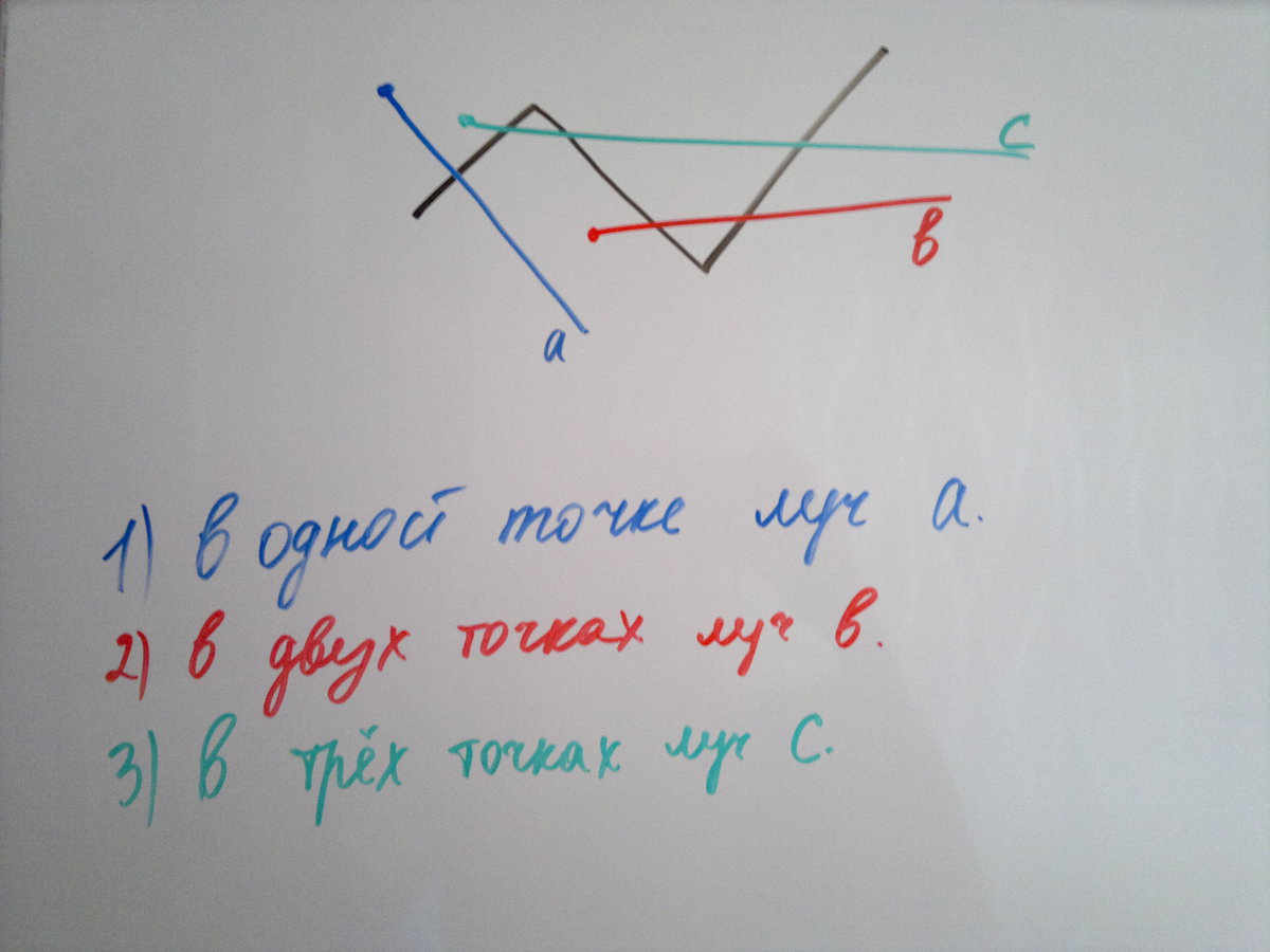 Начерти ломаную состоящую из трех звеньев и луч который пересекает в одной точке в двух точках в трёх точках