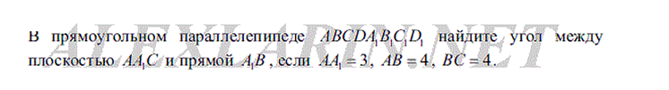 В прямоугольном параллелепипеде найти угол между прямой и плоскостью