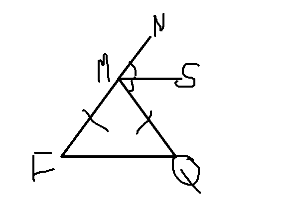 2) Угол FМQ = 180 - NMS-SMQ и FМQ = 180 - F-Q = > мы делаем вывод, что треугольник FMQ - равносторонний т.е. все углы равны.
