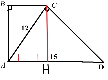 У прямокутній трапеції ABCD (AD‖BC, AB перпендикулярна CD) більша основа AD = 15 см, діагональ АС перпендикулярна CD, AC = 12 см. Знайти меншу основу трапеції