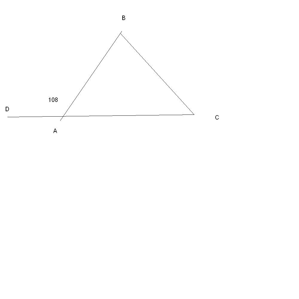 Дано: АВС - треугольник ДАВ - внешний угол, DAB=108
