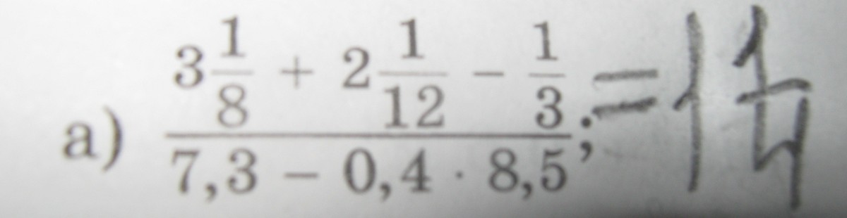 Теперь разберёмся со знаменателем0,4*8,5=3,4,теперь от 7,3-3,4=3,9-это знаменатель.