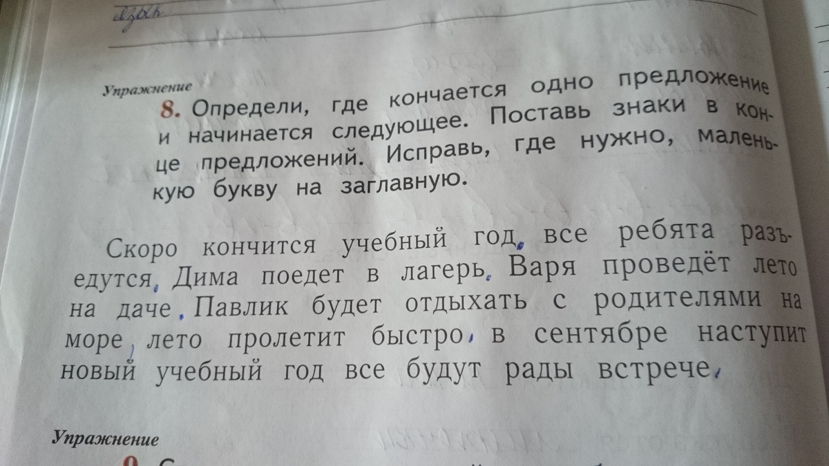 Скоро кончится учебный год. Все ребята разъедутся. Дима поедет в лагерь. Варя проведёт лето на даче.Павлик будет отдыхать с родителями на море.Лето пролетит быстро. В сентябре наступит новый учебный год.Все буду рады встрече.