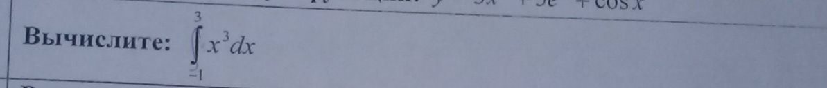 \int\limits^3_-_ 1 {x^3} \, dx= \frac{x^4}{4}|^3_-_1= \frac{3^4}{4}- \frac{(-1)^4}{4}= \frac{81}{4}- \frac{1}{4}=20