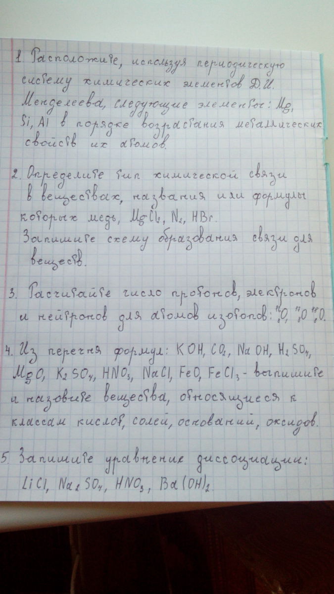 2. Cu - металлическая связь, MgCl2 - ионная связь, N2 - ковалентная неполярная, HBr - ковалентная полярная