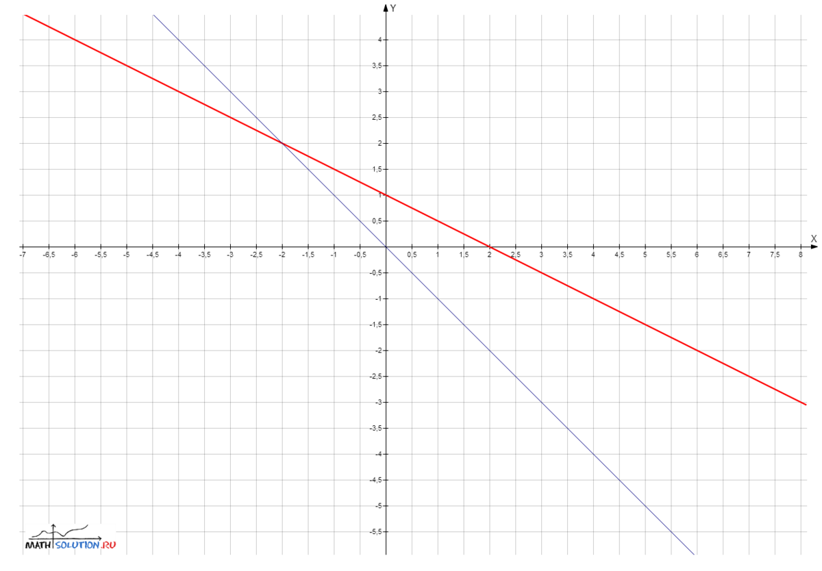 Графики пересекаются в точке (-2;2) и есть решение системы уравнения
