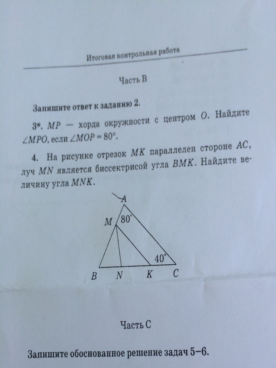 т.к. бис. делит угол на два равных следует что угол нмк равен 0,5 от угла вмк или равен 40 градусов