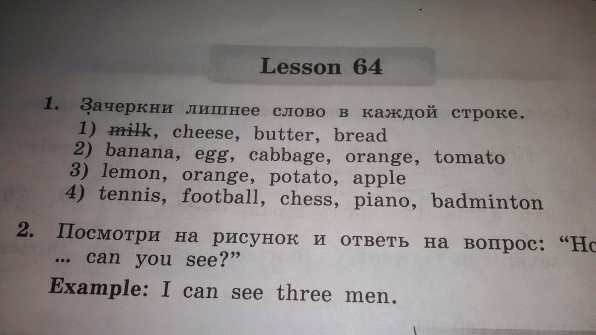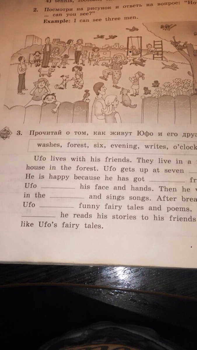 1. o'clock 2.six 3.washes 4.forest 5.writes 6.in the evening 1.milk 2.egg 3.potato 4.piano