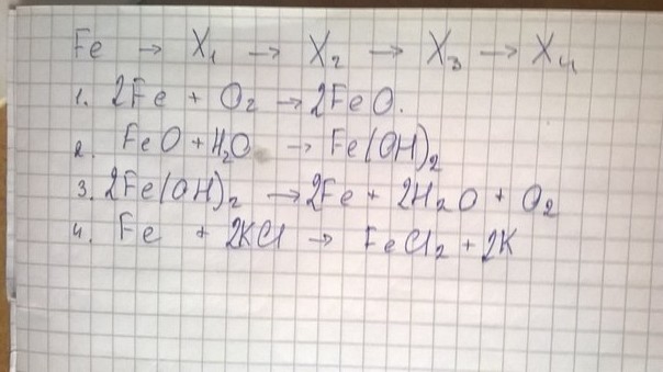 В результате превращений Fe—Х1—Х2—Х3—Х4 образуется конечный продукт(Х4)