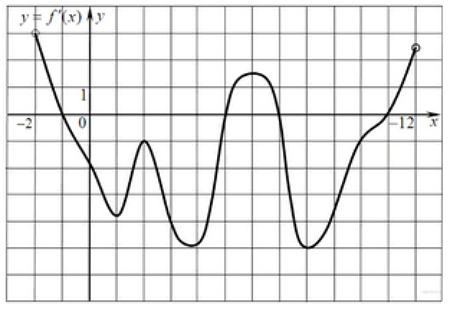 7.На рисунке изображен график у = f′(х) — производной функции f(х), определенной на интервале (–2;12). Найдите промежутки возрастания функции f(х). В ответе укажите их суммарную длину.